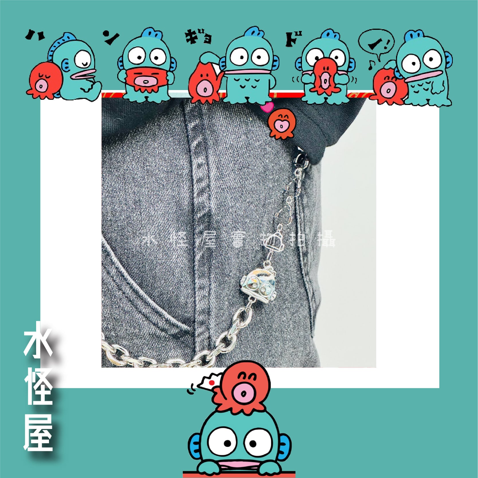 水怪裝飾銀褲鏈三個水怪頭 單鏈款 日版